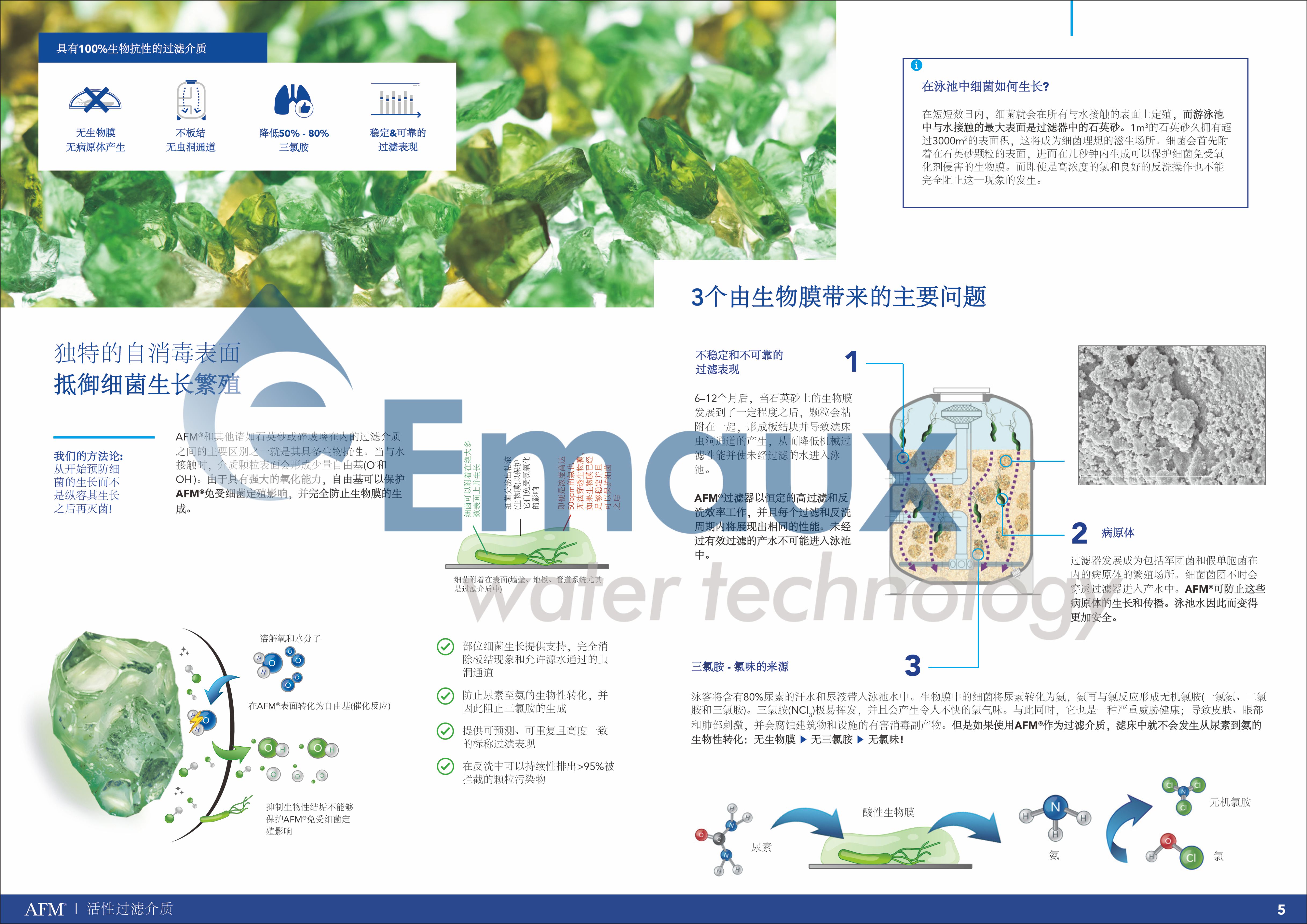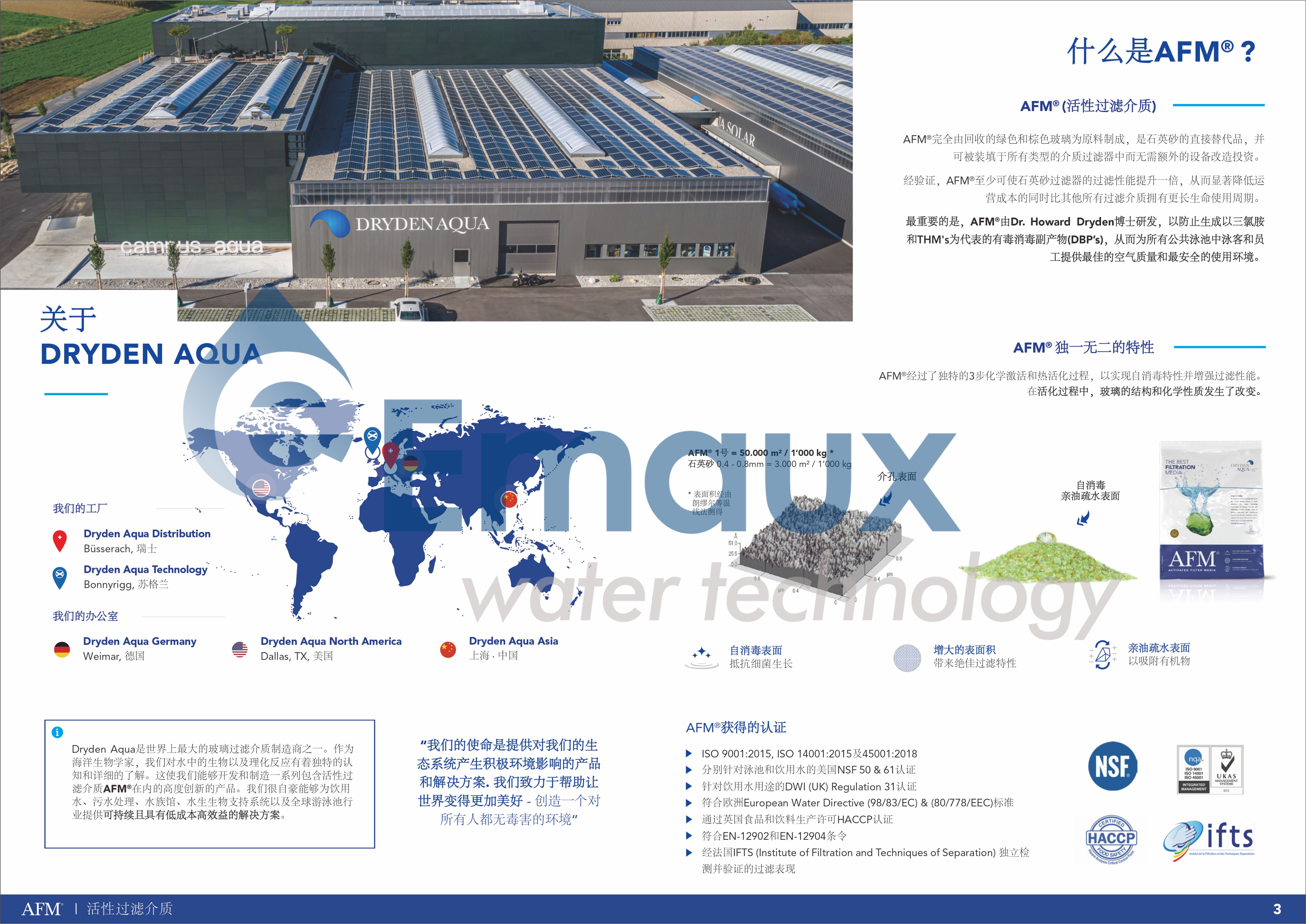 -AFM活性過濾介質(zhì)適用于各種游泳池、水上樂園、溫泉、鹽水池、污水處理、魚類養(yǎng)殖、飲用水、海洋館等. - 在使用AFM時(shí),無需對基礎(chǔ)設(shè)施進(jìn)行任何更改,可以直接更換石英砂或其他品牌玻璃沙,適用于各種氧化方法和所有溫度。