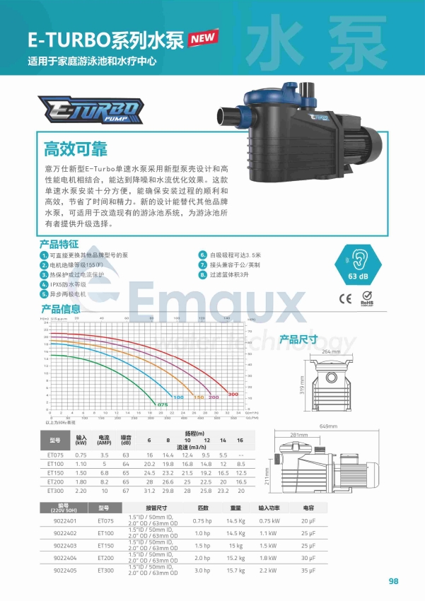 競技池意萬仕新型E-Turbo單速水泵采用新型泵殼設計和高性能電機相結合,能達到降噪和水流優(yōu)化效果。這款單速水泵安裝十分方便,能確保安裝過程的順利和高效,節(jié)省了時間和精力。新的設計能替代其他品牌水泵,可適用于改造現(xiàn)有的游泳池系統(tǒng),為游泳池所有者提供升級選擇