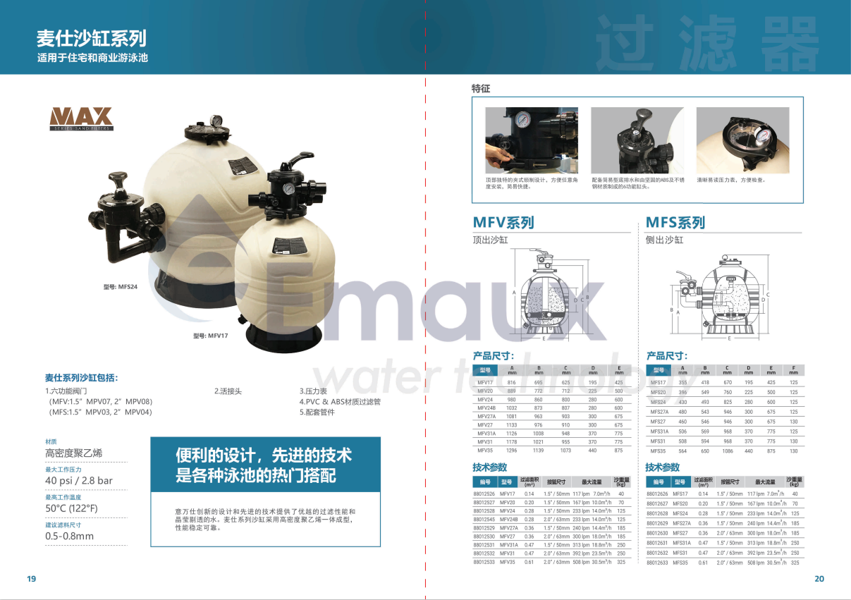 意萬仕創(chuàng)新的設(shè)計和先進的技術(shù)提供了優(yōu)越的過濾性能和品瑩剔透麥仕系列沙缸采用高密度聚乙塔一體成型,性能穩(wěn)定可靠。