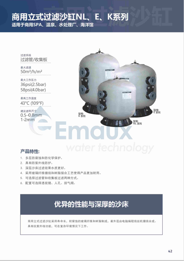 競(jìng)技池商用立式過(guò)濾沙缸采用壽命長(zhǎng),耐腐蝕的玻璃纖維和樹(shù)脂制成,最外層由電腦編程繞絲機(jī)纏繞合成。具有抗紫外線功能,可在復(fù)雜環(huán)境情況下工作。
