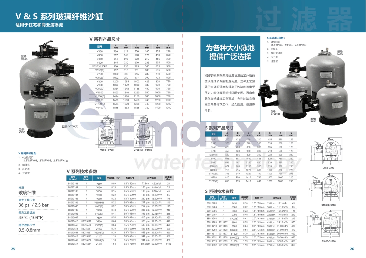 競技池V系列和S系列采用抗腐蝕及抗紫外線的玻璃纖維和聚酯制造而成,這種工藝加強了缸體的強度和提高了沙缸的可承受壓力。缸體表面經過防曬處理,再由電腦化自動纏繞工藝而成,允許沙缸在極端天氣條件下工作,經久耐用,使用壽命長。