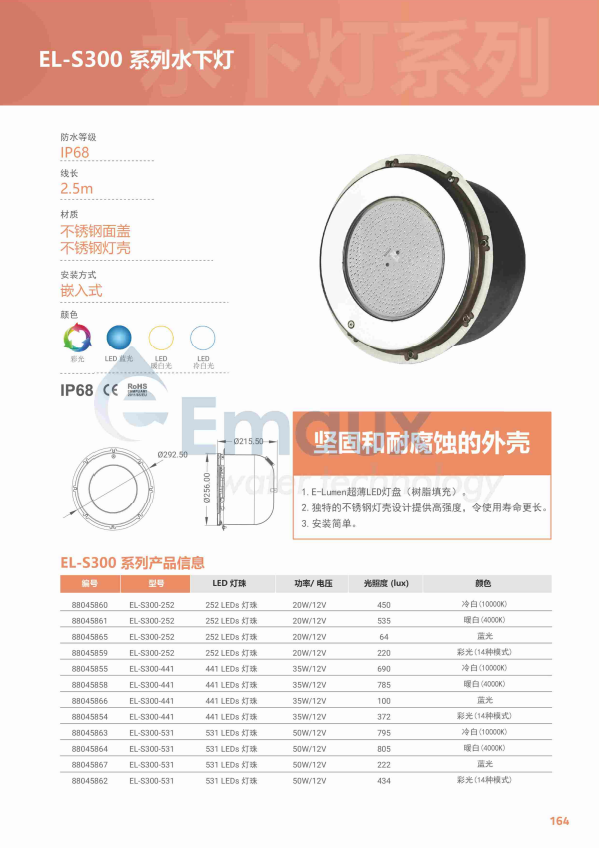 競(jìng)技池1.E-Lumen超薄LED燈盤(pán)(樹(shù)脂填充) 2.獨(dú)特的不銹鋼燈殼設(shè)計(jì)提供高強(qiáng)度,令使用壽命更長(zhǎng) 3.安裝簡(jiǎn)單