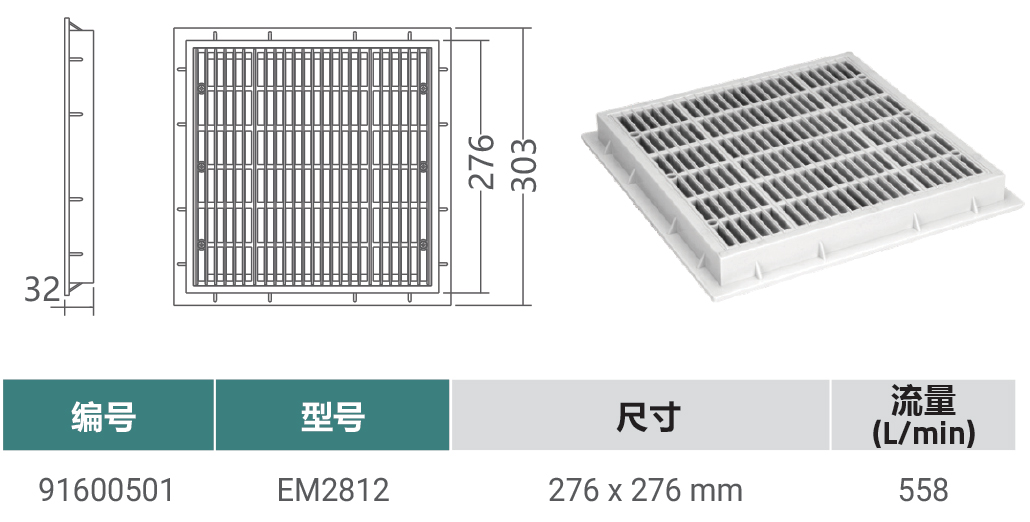 方形排水器蓋 (EM2812)