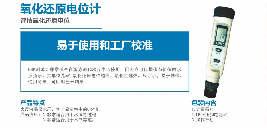 競技池ORP測試計(jì)非常適合在游泳池和水療中心使用,因?yàn)樗梢蕴峁┯袃r(jià)值的水質(zhì)指示。其單位是mV,氧化還原電位越高,氧化性越強(qiáng)。尺寸小,易于攜帶。使用簡單,可即時(shí)顯示結(jié)果。